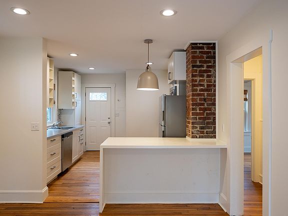 Available now! Adorable Montford cottage with lots of privacy, nature, quiet and charm. Custom kitchen features bar seating, stainless steel appliances including dishwasher, refrigerator and gas stove. Exposed brick, hard wood floors, central heat and AC, stackable new W/D, backyard deck off of the kitchen and a front porch with cathedral ceiling are all highlights of this cottage. Windows throughout and ceiling fans in the two bedrooms. Walk downtown in 5 minutes and around the corner to the local's favorite cafe - All Day Darling cafe. Walk to Nine Mile, Little Jumbo and Tall Johns in a few minutes. We'll consider tenants with one pet upon approval and pet fee. This house is perfect for a couple or single person who wants to be close to downtown but live in peace and quiet amongst the forest. Listen to the rain under the new metal roof! Excellent references and one month's security deposit required. Non smokers only. Credit check and references will be required as part of rental application. All utilities to be set up by tenant. First month's rent and security deposit of equal amount due to hold the house upon signing of lease. Tenant pays all utilities. Max 2 cars and max 2 adults living in house. No Airbnb rentals permitted nor sub-lets.