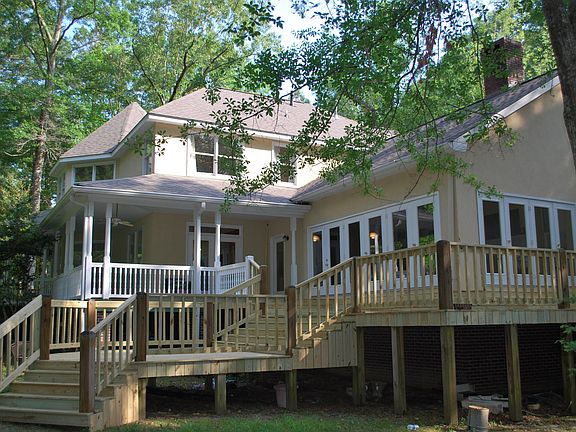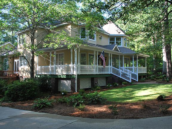 Victorian style home 4 bedrooms 31/2 baths Very private on beautiful wooded lot almost 1 ac Extra lot available Large porch wrapping around house Large deck on back 3 car garage Neighborhood clubhouse with pool Well for sprinkler system