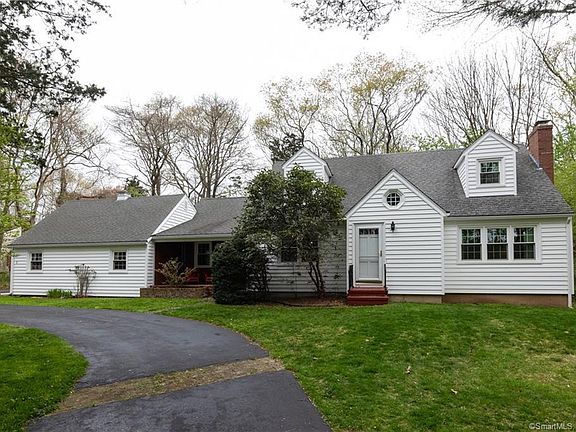 Set on a circular driveway with over 1 acre of land, this home offers privacy, yet is very convenient to the town center. This Cape Cod home features oak hardwood floors throughout and includes 3 bedrooms, 2 full bath and is charming, cozy and ready for you to move right in. The main level includes a formal living room with wood burning fireplace, an eat-in kitchen, formal dining room and family room with access to the 2 car garage, 3 season sunroom and covered front porch. The sunroom provides additional living space and features skylights, wood panel Cathedral ceiling and brings in an abundant of daylight with views of the private back yard while sheltering you from the elements. Sliding glass door leads out to the deck and back yard. Also included on the main level is a bedroom or office, offering the option for a 1st floor bedroom and a hallway full bath. The second floor features the master bedroom and one additional bedroom with a full bath in the hall. The lower level includes 560 sq. ft of finished living space with bamboo laminate floors. The basement also includes unfinished space for additional storage and a workshop area. Upgrades include vinyl siding and replacement windows.