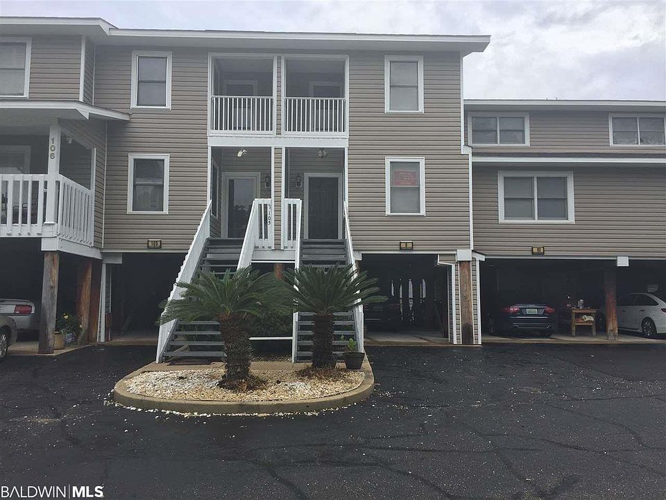 2 bedroom 2.5 bath condo with a gorgeous view of Mobile Bay. Covered parking with storage room; balcony with bay view off the living room and master bedroom. Carpet in living room and bedrooms, tile in kitchen and bathrooms.