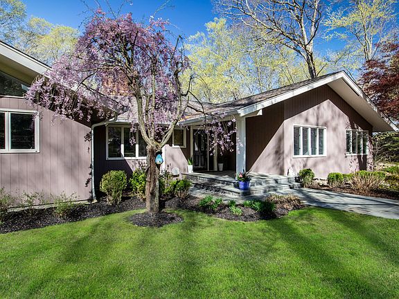 Dreaming of a happy, sun-filled home on a quiet street? Look no further. Wake up each morning to awe-inspiring sunrises in the East and drift off to sleep each night with the tranquil sounds of nature. This stylish Ranch offers rooms that are beautifully proportioned with an effortless, natural flow and a modern aesthetic. Enviable chef's kitchen and a spacious great room featuring cathedral ceilings, walls of windows and a stone fireplace. Master bedroom opens up to the deck to enjoy your morning coffee. Two additional spacious bedrooms, 3.1 full baths plus an office on the lower level that could serve also as a guest room. The lower level features a full bathroom, large family/play room with a second fireplace, wet bar and doors to the lower patio and ample storage. Ideally located in sought-after Yale Farms and close to all and less than an hour to midtown Manhattan.