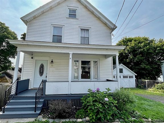 Charming neighborhood colonial with plenty of parking, 2-stall garage and comfortable living space! This home has a modern furnace, some recent updates, and is prime for a new owner's finishing touches... The open front porch is a nice place to relax during a summer evening. Hardwoods in the living room and dining room, handy 1/2 bath on main floor, bonus room off the kitchen for extra storage or living space, and more.