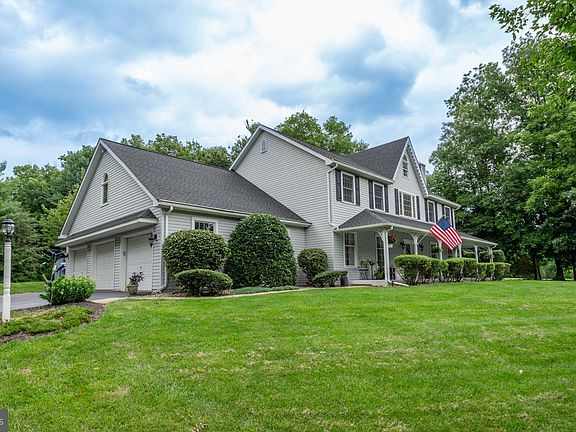 This home has it ALL! Yes, your dreams have come TRUE! This is yet another BEAUTY located in Douglassville, Amity TWP. w/NO HOA! This home is located in a Cul-De-Sac, adjacent to Arrowhead Golf Course (4th green) and sits on approx. 2 acres of land. The home is simply stunning with a spectacular, covered front porch. Oh my! Did I mention what a beautiful view of a well-maintained lawn, flower beds and the landscaping when relaxing on the front porch? The long, tree line driveway is truly breathtaking! You don't come across this type of home very often. Let move on to the inside of the home! Upon entering the home you'll notice the etched frosted glass door w/sidelights, 2-story foyer w/a classic chandelier. Not your typical foyer! Two coat closets, an inviting straight staircase that leads to 2nd story, deep archway entering the formal dining room sits to the left of the foyer W/pocket doors and the formal living room to the right, straight ahead is another entryway to the back yard, living space. The eat in kitchen has granite countertops, center island sink & dishwasher. and seating, Recessed lighting and plenty of counter space for that chef in you! A sliding door is located in the kitchen to the backyard living space. Off the kitchen is a pocket door to the formal dining room the beauty of the crown molding just makes that room a showstopper! Start thinking about those formal sit-down dinners! Continuing on to the garage, it is equipped w/3 garage door openers, laundry hookup, pull down -stairs for attic storage, outside access to wrap around deck. The 16 x 19 formal living room has 2 entrances, a woodburning fireplace, lots of natural lighting that truly makes you want to hang out and play some games or cozy up for conversation. A powder room is located near the 12 x 12 four seasons room/office/bedroom. This room has a closet and 2 sets of sliding French doors and a slate floor that leads to the wrap around deck and views of the golf course. On to the upper level. The 20 x 16 primary bedroom to the right at top of the staircase. The primary has 2 large in room closets, & faux tray ceiling, carpeted, newly renovated en-suite that has two sink vanities, a luxurious free standing soaking tub, shower is a walk-in, tiled, rain shower. Plus, a walk-in closet is equipped with a wood closet system. Bedroom 2- 11X13. Bedroom 3 -13 x 10 both with large closets & carpeted. On to the hallway bathroom that has tub-shower and a laundry area w/new stackable washer and dryer that stay! On to the finished basement- plenty of living space 23 x 25, full bath with an enclosed shower, dry bar area, utility room with another washer and dryer hookup, a great storage location, outside access through the Bilco doors. and we aren't done yet! One more room that can serve as a bedroom/office/ playroom this room has a large closet and window. Oh, by the way, there is a spot for a sump pump. Luckily this home has never needed one. Let's head out to the incredible back yard oasis!! Choose the door you would like to use! Sliding French Doors, Sliding door, Garage door etc. You'll notice the wrap around decking with plenty of area to entertain with privacy of the tree's that align the property. In the colder months you will have a view of The Reading Pagoda and that's about 8 miles away! Last, but certainly not least. The large, heated, in-ground swimming pool to throw that big bash you have always dreamed about OR just relax with your cold beverage on those hot summer days! Please take notice of the water hook ups at the pool and it even has a spray off area! Also, the 2 storage sheds in pool area. A garage/shed for your storage needs at the top of driveway. This home is equipped with a radon mitigation system, newer hot water tank a new roof! This home has it all and has been well maintained! Listen, I could go on and on! Schedule your appointment to see for yourself!