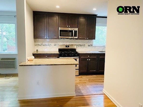 Just off the M train Fresh Pond Road, in prime Ridgewood Queens, 2 private bedroom apartment situated on the 3rd floor. Fully renovated with heat and hot water included in the rent. Sorry no pets allowed. Each bedroom has its own closet - one of the bedrooms has a sleeved air conditioning unit. 1 bathroom 7x14 feet. Large combo living room and dining room is 360 sq feet has air conditioning unit. Kitchen has new stainless steel appliances fridge stove microwave granite countertop lots of cabinet space hall closet next to bathroom for additional storage with coat rack. First, security, and one month broker fee due at lease signing.