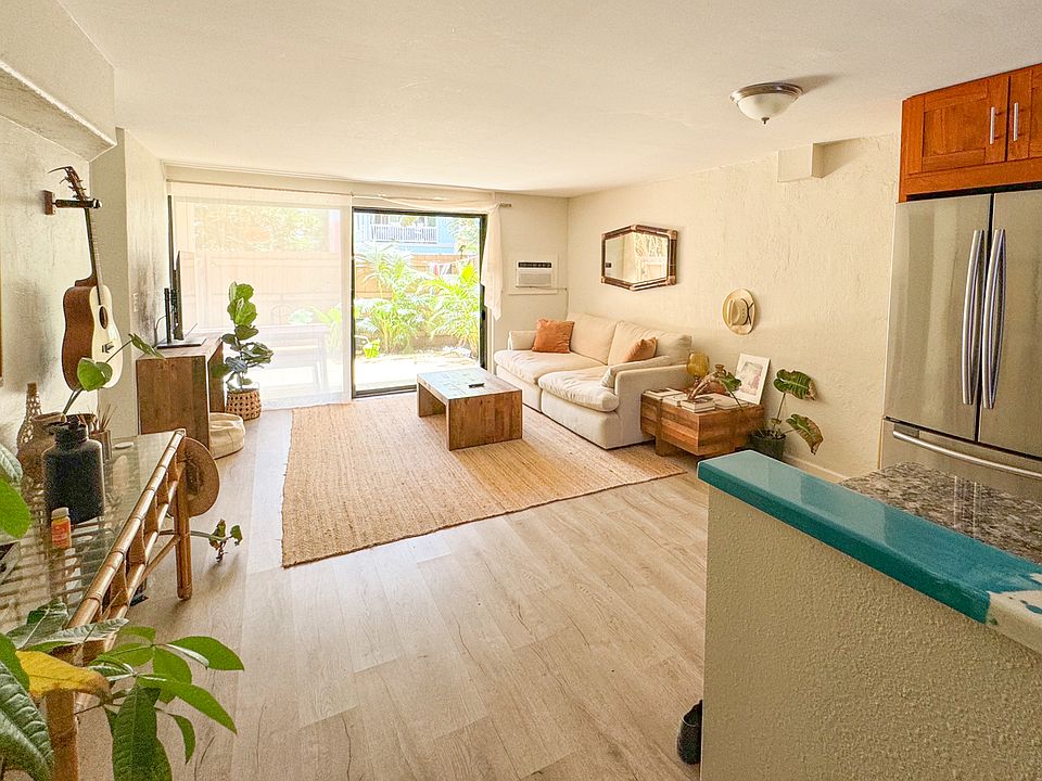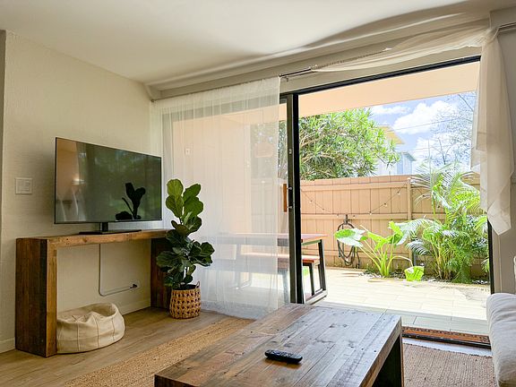 Experience ultimate beachside living in this 1 bed, 1 bath apartment in Waialua, Hawaii. Just steps from the beach, enjoy surfing and snorkeling. Features include a spacious backyard patio, community pool and sauna, designated parking, surfboard racks, ample closet space, a modern kitchen with dishwasher and electric stove, walk-in shower with rain shower head, clean and minimal styling, plus an in-unit washer and dryer. Live your island dream in this serene and stylish retreat! Prime Location: Just steps to the beach, perfect for morning strolls, sunset views, surfing, and snorkeling. Community Amenities: Enjoy access to a community pool and sauna, which are ideal for relaxation and unwinding. Parking: Designated parking space included for your convenience. Outdoor Living: Spacious backyard patio, perfect for outdoor dining, lounging, or entertaining. Storage: Surfboard racks are available to store your gear and ample closet space throughout the apartment. Modern Kitchen: Equipped with a dishwasher and a full-range electric stove, making meal prep a breeze. Stylish Design: Clean and minimal styling throughout, offering a clutter-free environment. Owner pays for water/trash. Renter pays electric