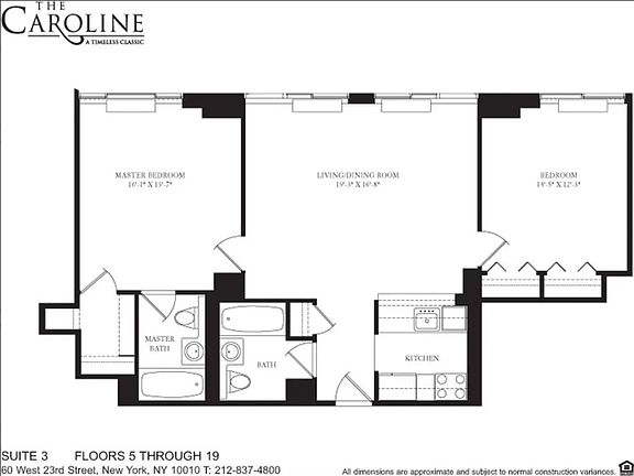 Beautiful two bedroom, two bathroom with a washer/dryer at The Caroline. This unit has a large open living space with the dining room, kitchen with granite countertops, and stainless steel appliances including a double-door refrigerator. Hardwood flooring, solar shades, and an ample closet add additional touches to this great home. Our new on-site membership-based 40,000+ sq ft fitness facility, Life Time 23rd Street, has an indoor saltwater pool, over 90 classes per week taught by New York's top instructors, a world-class cedarwood sauna, eucalyptus steam room, and luxuries like premium toiletries and full towel service. The Caroline, designed by Richard Cook and Costas Kondylis, is a beautifully appointed, 22-story white-glove residence in close proximity to Madison Square Park, at the intersection of New York City's vibrant Chelsea and Flatiron neighborhoods. Each home features open living spaces with abundant closets, oversized windows, marble bathrooms, and generously laid out kitchens with full-sized stainless steel appliance packages, granite countertops & floors. Select residences feature 10-foot ceiling heights, walk-in closets, floor-to-ceiling windows, private terraces, washer/dryers, strip hardwood flooring, and NEST climate control systems. Extra care was put into soundproofing wall and floor insulation during construction. The building offers a superb amenity package that includes a 24-hour doorman, resident concierge, on-site valet for dry cleaning, tailor, a shoeshine station, tenant lounge, children's playroom, arcade, billiard parlor, private meeting facilities with outdoor space, 12,000 SF landscaped roof deck, a commercial sized laundry room with 50+ machines and an immaculate interior courtyard with formal European garden. Resident events range from live music and rooftop BBQs to Sunday brunch and varied events for kids, all complimentary to residents. Bikeroom, parking spaces, and storage cages are available for rent upon availability and request. Parking has secure elevator access directly to select residence floors. Electric vehicle charging is also available. Please ask about our partnership with Life Time. Photos and floor plans are representative and approximate, pricing subject to change Fees: $20 non-refundable application fee per person $150 pet fee per approved animal 1st months rent 1 month's security Lock out fees- $50 after 8 pm -Bike fees- $30 per month -Storage fees- $150 per month -Event space cleaning fee: $150 plus tax per event.