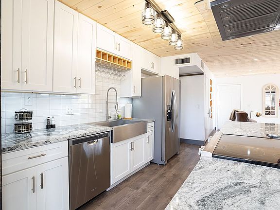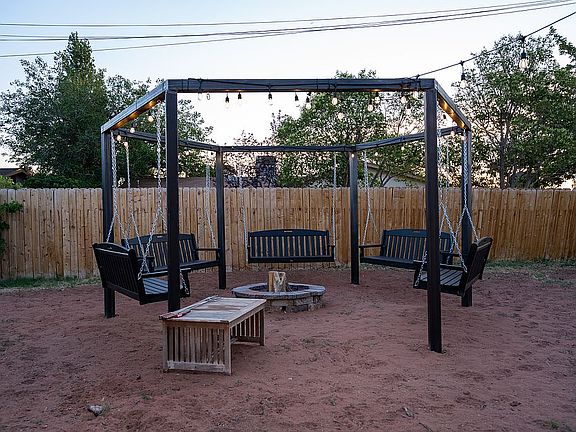 Remodeled in 2017 with continuous investments each year, this 1997 home features 3 Bedrooms, 2 Baths + 2 Car Garage, open concept living area, rustic-yet-modern finishes, and high-tech amenities like under-cabinet LED lighting, Wireless BT Speaker in bathroom. Custom cabinets, granite countertops, stainless steel appliances, & a massive island, the kitchen has everything. Gather around the new custom firepit swings & fully fenced yard. Both bathrooms offer a bathtub and tiled shower featuring a stacked stone accent wall. Large Central AC & 2 electric fireplaces installed. New Roof Mounted AC installed 2018, Shingle Roof updated in 2019, Steel & Trex Fire Pit Swings in stalled 2022, Dead trees cut 2022, Stumps removed 2023.