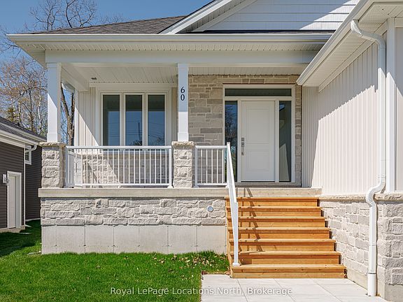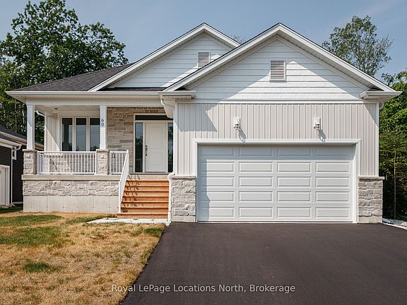 Charming Custom Built Bungalow Just Blocks from the Beach! Prime Location with Rental Suite Potential! Welcome to this beautifully finished 1,345 sq.ft. bungalow, built by local renowned builders VanderMeer Homes! Ideally located just a few blocks from the beach, a major superstore, and with a full athletic track right across the street, perfect for those who love a healthy, active lifestyle. This home offers the ideal blend of comfort, convenience, and future potential. Step inside to a bright and open main floor featuring 9 ft ceilings and a thoughtfully designed layout. The heart of the home includes three spacious bedrooms, including a primary suite with its own ensuite bath and a generous walk-in closet. A convenient mudroom and main-floor laundry add to the practical functionality of this home, making day-to-day living a breeze. The lower level remains unfinished, providing a blank canvas to truly make it your own. With plenty of space for a large rec room, additional bedroom, and ample storage, the basement also includes a separate entrance and is already roughed-in for a separate suite. Whether you're looking to create an income-generating one-bedroom suite or an extended living space for family and guests, the possibilities are there. Enjoy outdoor living with a covered front porch and a spacious 22' x 10' rear deck, ideal for morning coffee or entertaining on warm evenings. Built with quality in mind, the home includes stone accents, central A/C for year-round comfort, and modern finishes throughout. With its incredible location, walkable amenities, and bonus suite potential, this property is perfect for families, downsizers, or investors. Property taxes have not yet been assessed and are currently based on vacant land status. Don't miss your chance to own in this vibrant, fast-growing community. Don't miss out! Come live the 4-season lifestyle to it's fullest at 60 52nd St S in Wasaga Beach!! Finished basement option 50k more, Tarion warranty.