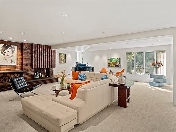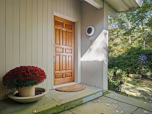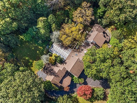 Luxurious mid-century design on 4 private gated & fenced acres w/meandering bluestone pathways in peaceful neighborhood setting! The floor plan provides plenty of open space as well as private family areas, including entertainment-size living room featuring fireplace, exceptional kitchen wi/oversized island, multiple prep areas open to family room w/fireplace. Laundry/pantry provide ample storage. The private primary suite features walk-in closet, sitting area, steam shower & whirlpool tub. Separate wing with 3 FIRST FLOOR BEDROOMS & 1.5 baths. Swim year round in the indoor heated pool w/retractable roof, sauna & changing room w/shower. Relax in the lower level lounge, work from home in one of 2 offices. There’s a library nook, gym, full bath and game room. Substantial workshop or studio & 5 oversized garage spaces. Optional in-law suite offers potential multi-generational living/guest space. Bluestone terraces & decks connects outdoor living to this sought-after property!