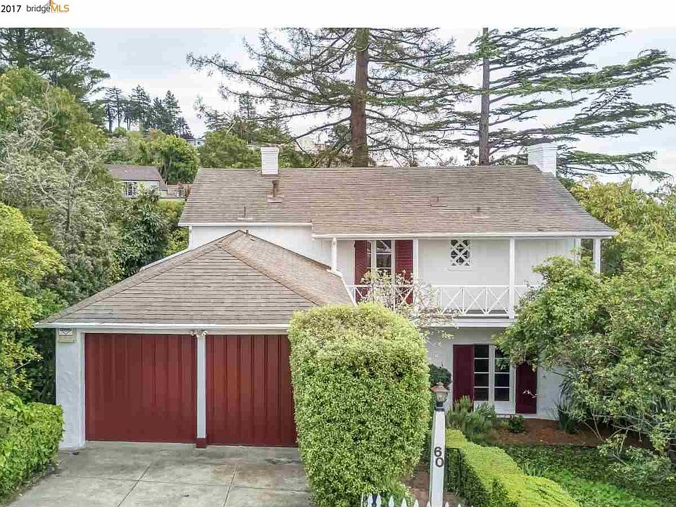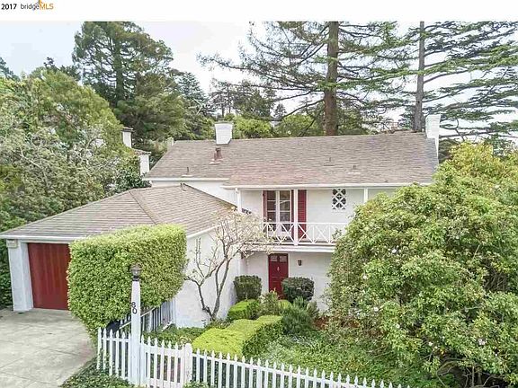 Lovely Monterey-style home located in the North Berkeley Hills. The main level has an elegant entry, formal dining room, half bath, galley style kitchen, and sunken living room. The upper level offers a lovely landing with access to the front balcony, two bathrooms, a lovely master bedroom and rear balcony. There is a lower level rumpus and utility room with a half bath. The exterior grounds include a terraced garden with a deck and lower level brick seating area in which to enjoy the mature redwood and oak trees.