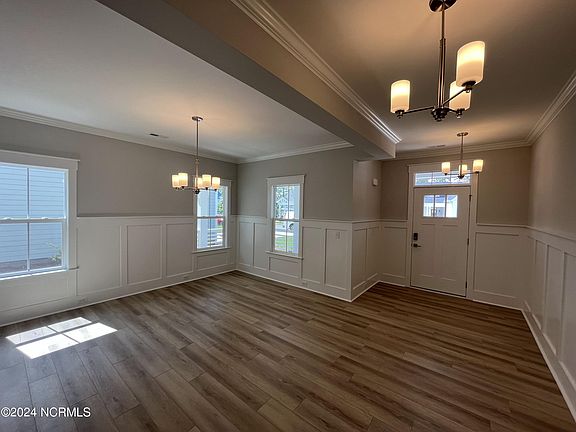 MOVE IN READY!!! Welcome to Carolina Creek and live the coastal life! Bill Clark Homes' popular Harrison home plan in the Coastal Elevation elevates the community even more. This beautiful home boasts 3,194 square feet with 3 bedrooms, 3.5 baths, a flex room with on suite bath and a 1st floor study. Additional upgrades include a screened-in porch, wood shelving in primary closet, a chef's kitchen with upgraded appliances and quartz countertops, wainscoting in the foyer, dining and powder room, tile fireplace with floating mantle, walk-in tile shower in primary bathroom, an oversized patio, luxury vinyl plank flooring throughout the first floor and a fully sodded backyard.