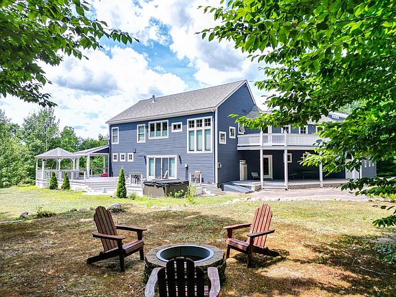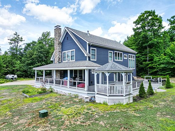 Luxurious estate spread out on over 2 very private acres in Center Conway, just 1 mile from the Conway Lake town beach . The home features a circular driveway entrance, a huge 3-car garage, wraparound porch, gazebo, large deck with hot tub, and a sprawling yard area. Inside, the house is filled with custom features. The chef’s kitchen, open to the living room, is equipped with a top of the line 6-burner Wolf gas range with grill, pot fillers, a separate coffee bar, plus a large walk-in pantry with plenty of organization options.The living room is home to a cozy gas fireplace plus sliders leading out to the expansive back deck and yard. There’s also a first-floor office/library area, and a family/media room with a wood-burning fireplace. Just off the garage is the mudroom of your Pinterest dreams, with cubbies, drawers, and storage! The second floor has a huge primary suite wing, with a large bedroom complete with a gas fireplace, an en suite with walk-in shower, double sinks, a jacuzzi room, plus a walk-in closet. There are also 2 other nicely sized bedrooms with bathrooms and built-in storage. The partially finished basement could be a gym, theater, home office, craft space, there’s lots of possibilities. Keep the lights on with the hardwired-generator, and don’t forget the RV hookup, separate shed with drive-in capabilities for your lawn mower, and plenty more features! 10 minutes to North Conway. Don’t worry though, the expansive lot ensures plenty of quiet & privacy!