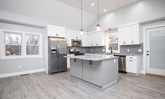 Absolutely stunning home with a beautifully remodeled grand kitchen overlooking a generously sized living room great for entertaining. From the living room you round the corner to the laundry area along with 2 good sized bedrooms, one being a master suite and the other has a shared bath. From the 1st floor you proceeded up to a private second level with 2 additional bedrooms one of which is a second master suite with a large walk in closet, a smaller closet and gorgeous master bathroom. This home has been tastefully renovated inside and out to include two decks, enormous farmers porch, brand new septic, landscaping and driveway.