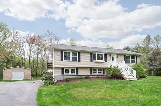 Showings Start 5/25 o.h. Sat. 1-2:30. Imagine feeling like you are living in the country with private 5 acres of land. Sitting on your back deck looking at lush green grass and trees all around. And yet so close to all you need just 3 miles from Attleboro line, 6.5 miles to the train station. Not your typical raised ranch as you walk up the stairs & enter front door to main living level. Great open floor plan with lots of natural light also has gas fireplace. OR enter at ground level and enjoy a roomy family/play room with cozy wood stove. Plenty of storage area too. This lovely unique home feels like a 6 to 8 year old home with all the upgrades, kitchen, baths, beautiful wood floors (hickory in 2 bdrms) & tile flooring, windows, fresh paint and more. See attached feature sheet. 2 sheds and portable 24x14 garage included. hard wired for dog fence. Don???t miss out on this one.