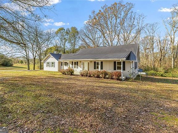 Welcome to this charming 3-bedroom, 2-bathroom county ranch home set on 1.19 peaceful acres. Surrounded by mature trees and natural landscape, this property offers the perfect blend of privacy, comfort, and convenience. Hardwood floors that run throughout the home, creating a warm and inviting atmosphere. The spacious family areas flow easily, making everyday living and entertaining a breeze. Enjoy morning coffee on the inviting front porch or unwind on the screened back deck overlooking the fenced backyard-ideal for pets, play, or gardening. The durable metal roof provides long-lasting peace of mind, while the side-entry 2-car garage adds convenience and excellent curb appeal. Located just one mile from the high school and only minutes from I-85, this home offers quick access to shopping, schools, and major commuting routes-all with no HOA restrictions. With its generous lot, timeless ranch style, and a blend of outdoor and indoor comforts, this property is move-in ready and full of potential. Don't miss your chance to make it your own!