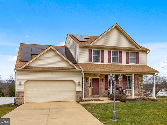 Nestled on a peaceful cul-de-sac, this charming home offers the perfect blend of comfort and elegance. Featuring a spacious yard, ideal for outdoor gatherings and play, this residence is a haven for relaxation and enjoyment. -Interior Highlights: Propane Fireplace French Doors separating dining room and formal living room Gourmet Kitchen with 42" Maple Cabinets and Breakfast Bar Stainless Steel Appliances and Wood Floors Powder Room with Pedestal Sink & Ceramic Tile Wood Floors in Foyer Second Floor Laundry and Vaulted Ceilings Blank Canvas Basement- To design however you choose! -Master Suite: Corner Soaking Tub, Ceramic Double Bowl Sink & 4 Feet Walk-in Shower -Exterior Amenities: Financed solar panels that power entire electrical system Expansive 12x12 Deck for Outdoor Entertaining Monobloc Plumbing System for Efficiency Exposed Walk-out Basement Tilt-in Windows for Easy Maintenance Schedule your viewing today! **SOLAR PANEL INFORMATION** Solar panels offer a sustainable and cost-effective solution for generating electricity for your home. Sunnova serves as the finance company, requiring a minimum credit score of 630 OR a $1000 security deposit to proceed with the transfer between seller and buyer. Trinity handles the installation process, ensuring that the solar panels are properly mounted and connected to your home's electrical system. Once installed, the solar panels begin generating electricity, with Met Ed serving as the electricity company. Between the months of March and November, daylight saving time allows the solar panels to accumulate enough energy to sustain you through the winter months. By April 2024, electric bills will be sustained at $10.60 for the hookup fee, in addition to a monthly financing payment of $133 (after a $52.00 credit per month, which is paid to the new buyer quarterly for $171.00). Buyer will also receive a rebate amount at the end of each year for unused energy, which currently is around $300 for the current owner. Balance of the loan is $38,000 for a term of 25 years. Overall, solar panels offer a reliable and eco-friendly way to power your home while potentially reducing your energy costs. Removal of solar panels was estimated at $6,000, which will also cause the new owner, the need to repair damage caused to the roof from the removal process.