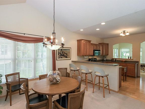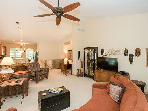 Easy condo living on secluded street. Bright & open w/vaulted ceilings, four season room looking out at treeline & walk-out lower level! Maple hardwood floors in kitchen area & maple doors throughout. Breakfast bar & dining area, built-in desk in kitchen, 2 laundry areas - 1 on main level & another in LL with laundry chute & built in ironing board. Master has en-suite bath w/dual vanities & shower w/built-in seat, walk-in closet. Lots of storage! Great built-in bookcase in Family Room in LL. New roof 2017.