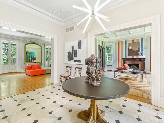 Stunning and significant, Frederick Clarke Withers' early Victorian masterpiece sits serenely back from the road in elegant Balmville, surrounded by sweeping lawns. Completed in 1856, its spacious rooms with 10-feet ceilings lend grandeur & grace, reflecting the splendor of the era. Period details found in the 5 unique fireplaces, mahogany coffered ceilings & wall paneling, original recessed mahogany bookcases with its 19th century glass doors intact and wonderful decorative strap work ceiling make it extraordinary. Meticulously wood carved built-ins, ornamental plaster swag molding, & ceiling moldings with dainty corner cartouches, add grace and charm. Partially restored and renovated, with funky 40's bathrooms & a completed updated kitchen, recent extensive repairs have been made inside and out to the slate roof, plumbing & electricity. A paved, covered verandah runs the length of the house, perfect for al fresco dining and evening soirees. Just perfect for large gatherings, a crowd of family & friends, this exciting, important piece of Newburgh history is waiting for those few special touches to make it shine as brightly as it did in 1856.The home's location is superb. Balmville was the site of Algonac, the birthplace and home of Sara Delano, mother of President Franklin Delano Roosevelt, and an air of history and grace lingers. It is a most perfect location filled with distinctive 19th century homes, churches and other architectural accomplishments, a throwback in time to an elegant, slower-paced lifestyle echoing the grandeur of life as a 19th Century homeowner but now with everything 21st Century you might want or need within easy reach. The home is directly across from the historic Powelton Country Club with its meticulous 18-hole golf course, 6 American red clay tennis courts and magnificent clubhouse facilities. And just a few short steps away from that lovely walk in the sun, is the vibrant Newburgh waterfront with its impressive variety of restaurants and galleries, and the thriving marina where boating, jet-skiing and kayaking are in full swing in the summer months. It's a happening town!