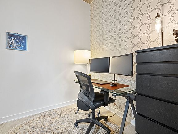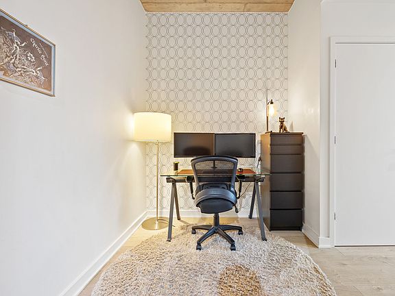 A gorgeous and generously spacious 1B + Den loft-style condo on the 8th floor in the heart of Toronto's fashion/entertainment district, just a moment's walk to multiple grocery stores, parks, Toronto's waterfront, the TTC, Billy Bishop Airport, event spaces like Stakt Market and Budweiser Stage, several top-notch restaurants and bustling bars, while maintaining a peaceful and quiet community within the building. This property boasts: - Soaring 10ft ceilings - Tons of natural light - Floor-to-ceiling windows in living and bedrooms from which you can see lovely views of Toronto from just above the treetops - A beautiful marble and walnut fireplace in the living room - Wooden accent walls in the dining area and bedroom - Ample closet storage and a large bedroom with space for additional cabinetry - Marble countertops and back splash - New kitchen appliances including gas stove - A Juliet balcony - In-suite laundry - Underground parking for the tenant and free visitor parking for guests - Convenience store and veterinarian on ground floor, and Farm Boy Grocery across the street - No smoking tobacco products in the unit (weed and vaping is allowed)