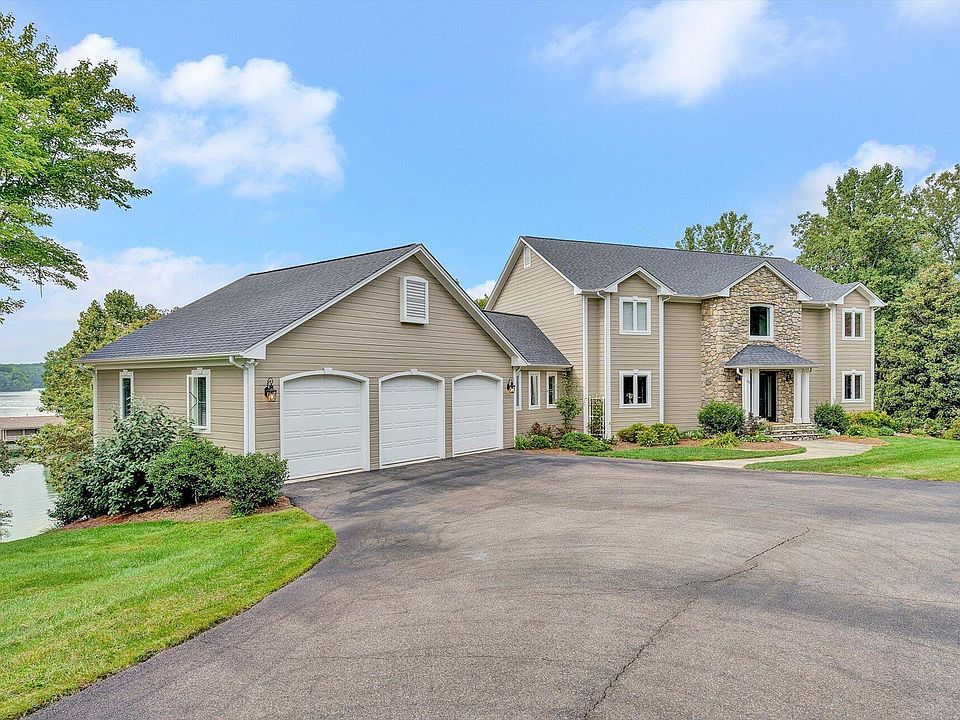 Extraordinary lakefront home located in the prestigious private waterfront community... The Waters Edge. The grand entry w/soaring ceilings & walls of windows provides an impressive first impression. Home offers 4,500 sq. ft. Oversized triple-car garage, open floor plan, single level living, extra lot for a total of 1.17 ac., & 389 ft. of waterfront. 5 BR w/2 master suites, 4 full BA, & 2 half-BA. Gourmet kitchen w/SS appl. & granite C/Tops, eat-in-kitchen, living room & family room w/gas FP, great room, recreation room, wet bar w/Indian marble C/tops, & work room. Expansive E/Level deck & patio for entertaining. Heated floors in BA on main level. Amazing lake views, boat lift & 2 Jet Ski lifts. Amenities available: golf, restaurant, tennis, pickleball, fitness room, pool, & Equestrian
