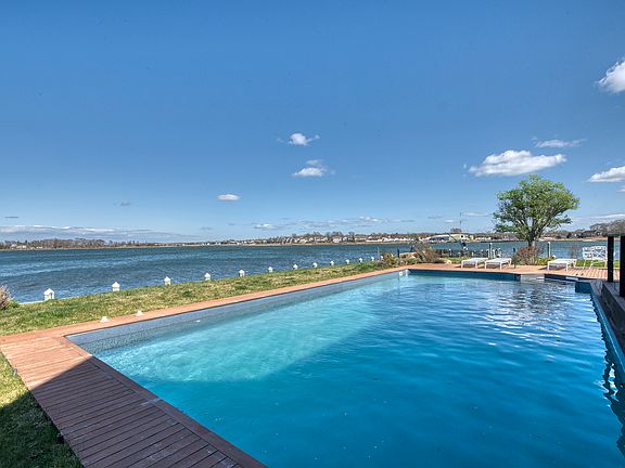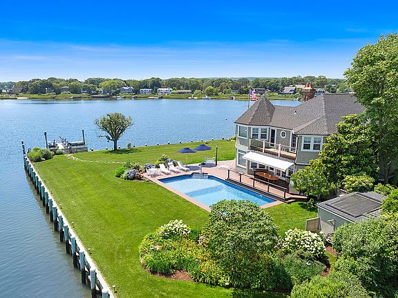 Rental Registration #: RP250890 A Waterfront boaters paradise with a full service deep water dock and access to Sag Harbor Bay awaits your arrival! With a sparkling waterside pool and views over the harbor to Sag Harbor Village, this stunning nautical property offers 4 bedrooms , 4 baths with water views from every room . A bright open concept first floor includes a living room , chef's kitchen, dining area and a comfortable den ~ media room with movie style reclining seating. The second floor offers a spacious primary suite with a waterside balcony overlooking this lush waterfront property. There are two additional bedrooms offered , one en-suite and a special over flow bonus area for many expanded options. This spectacular property wraps around the home on 2 bullheaded waterfronts which are perfectly designed for entertaining with an outdoor bar pavilion, a saltwater pool, and a full service deepwater dock . Just a few blocks the from the popular Foster Memorial Long Beach that is fully life guarded and has gorgeous westerly sunsets. Just over the bridge are Sag Harbor Village's award winning restaurant's and the Bay Street performing arts theater for entertainment. This private retreat on the peninsula of Bay Point is truly a one of a kind summer get-away, kayaks and paddle boards included!
