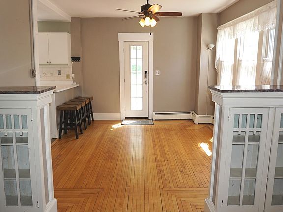 OWNED Solar panels = reasonable energy costs for years! Typical electric bills this past year are in the $25-$30/month range other than 3 winter months where electric heaters were used. Oil usage for last year approximately 300 gallons! This beautifully maintained home in the NE section offers charm and character and is in move-in condition! Pleasant living room with brick fireplace opens to a formal dining room with a three southern facing windows allowing lots of nice light to enter the home; adjacent fully applianced kitchen w/breakfast bar. The second floor has three family bedrooms and an updated full bath. Handsome hardwood floors throughout, a wonderful three-season front porch plus a back deck overlooking the spacious fully fenced back yard and detached 1-car garage. Vinyl siding, updated mechanicals and two Tesla batteries that provide power during an electric outage. Fully fenced yard perfect for family gatherings, pets or gardening and the location is great for easy access to schools and shopping. Within minutes of Killington and Pico, Pine Hill Park and all other outdoor recreational opportunities.