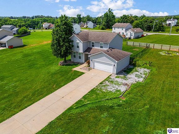 Welcome to this beautifully maintained home in the desirable Cottonwood Estates subdivision, ideally set on a generous 0.69-acre lot. Enjoy the best of country living with easy access to Elizabethtown, Fort Knox, Glendale, and Louisville. This spacious residence offers 2,750 square feet of living space and blends charm with modern functionality. Step onto the inviting covered front porch or relax on the back deck overlooking the fenced-in backyard—perfect for entertaining, pets, or family gatherings. Inside, you’ll find a thoughtfully designed layout featuring a formal dining room, a large living room, and a bright eat-in kitchen with white cabinetry, brand-new appliances, and a custom tile backsplash. Hardwood flooring and plush carpeting flow throughout the home. The primary suite offers comfort and privacy with his-and-her closets, a private ensuite bath, separate shower, and water closet. Two additional bedrooms and a full bath complete the main level. The full basement provides a finished family room—ideal for a home theater, playroom, or second living space.