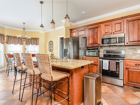 Picture perfect neighborhood! Large home with 4 bedrooms and 3 full baths on the main floor along with a big bonus room upstairs. Other features include hardwood and tile flooring, 9' ceilings, living room with cathedral ceilings, custom cabinets with granite counter tops, separate dining room and breakfast room, and an additional small office. Master suite with two vanities, two large closets, whirpool tub, and separate shower. Home has covered porches across the front and back, oversized two car garage with extra space for mowers and tools. Make appointment now to see this home today.