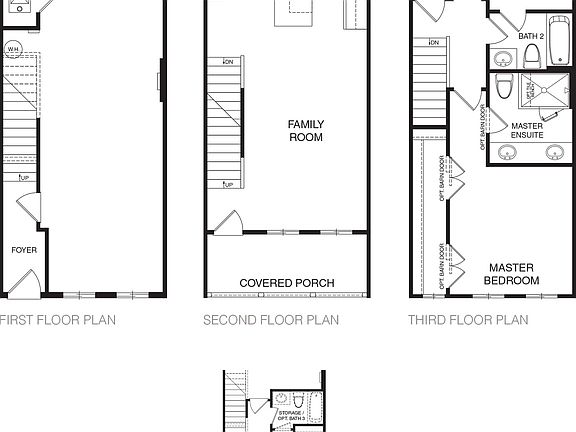 The Middleton floorplan features open concept living on the middle floor with an oversized kitchen island and a covered porch. Chefs and entertainers alike will enjoy the spaciousness of the kitchen and connected family room, and the built-in kitchen pantry offers an abundance of storage. The top-floor offers a private owner's suite and bath with a secondary bedroom and bath for a roommate or guest. The first floor includes a private 2-car garage.