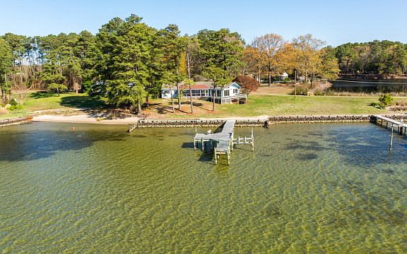 Fishing Bay at its ultimate best! Sandy Harbor on Fishing Bay offers a magical retreat or full time residence that is truly unique in the best sense of the word. The residence offers 4 bedrooms plus a sleeping loft, waterside screened porches, waterside decking, new kitchen, pier with lift, sandy bottom and enormous views. Master wing is its own escape with private bath, great room, wet bar and views from every window. The vibe is pure Coastal meets rustic in a private, quiet, Deltaville location just minutes from Fishing Bay Yacht Club. Tons of storage for water toys and craft, outdoor shower and sauna. First offering.