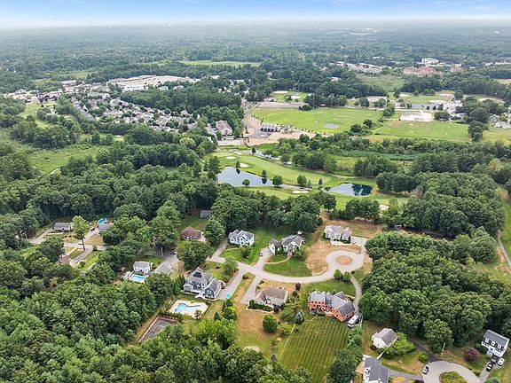 This exquisite colonial-style home features 4 bedrooms and 4 baths, located on a desirable cul-de-sac abutting Tewksbury Golf Course. The first level includes a chef's kitchen, formal dining room, office, and half bath. Flow into oversized family room with cathedral ceilings perfect for entertaining large gatherings. Upstairs, find 4 bedrooms including a grand primary suite and a guest bath. The finished basement, complete with a 3/4 bathroom, provides excellent additional living or guest space. A spacious 3-car garage adds convenience, making this home perfect for elegant and comfortable living. Enjoy the serene views of the golf course and the peaceful, upscale neighborhood.
