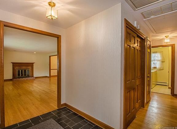 Beautifully maintained ranch home featuring 6 rooms, 2 large bedrooms, 2 full bathrooms including a master bathroom. This is single floor living at its finest with formal dining room, family room with built-ins, fireplaced living room, eat-in-kitchen and main floor laundry room. Interior spaces have had wallpaper professionally removed, walls refinished and painted. Hardwood floors have been professionally polished and new carpeting in the family room. Enjoy the nice weather from your covered front porch or the enclosed 3 season room off of the kitchen and family room. This property offers gas heat and hot water, whole house generator, security system, central a/c and solid wood 6 panel doors along with a 2 car garage.