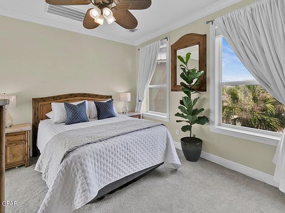 PRIVATE BEACH & a massive resort style lagoon pool with on-site security in an idyllic beach community. A Duplex Townhome with no neighbors on one side. Only 3 Blocks to the West, luxurious Alys Beach Beckons. Barely 3 blocks to the East you'll find Rosemary Beach with it's romantic restaurants and shopping. Settle into vacation mode on the Elegant East end of 30A! 3 Bedroom with bonus hall bunks and 3 1/2 bathrooms that could sleep 10. *New flooring in all 3 Bedrooms as of Jan. 2023.* Perfectly positioned: this home is located 2 blocks from the private community beach access and overlooking the expansive lagoon pool and lush tropical green space. There is a free neighborhood tram service, but with this enviable location you can wave it on by. The kitchen has been beautifully updated with quartz countertops, sea glass subway tiles, a farmhouse sink and newer Stainless Steel Appliances. New Wood look ceramic tile, Crown Molding, Raised ceilings, and 8' doors elevate the space. Natural light pours in to every corner of this plant lovers paradise.