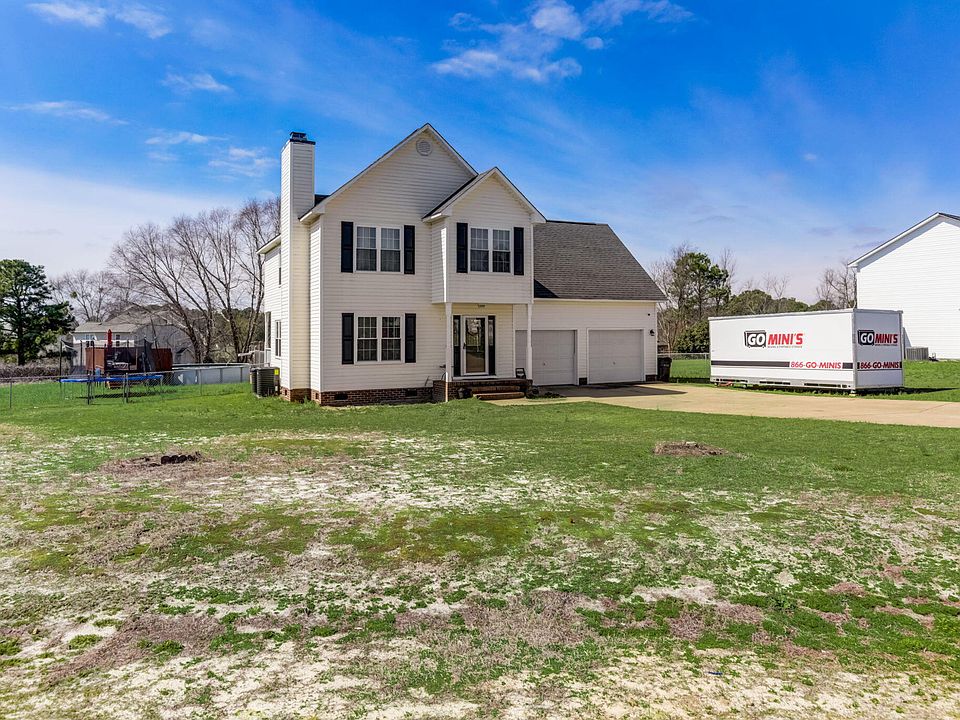 60 Bluebird Court, a charming residence in Sanford, North Carolina, offering a perfect blend of comfort and style. This delightful home boasts 3 bedrooms, 2.5 bathrooms with an additional room above the garage. This home is nestled on a generous .5-acre lot, providing a serene and spacious setting for your family. As you approach, you'll be greeted by a well-maintained exterior, featuring a large driveway leading to a two-car garage and a welcoming covered front porch. Step inside to discover a large open living area adorned with luxurious LVP flooring, trey ceilings, and a cozy wood burning fireplace, creating a warm and inviting atmosphere. The heart of the home, the eat-in kitchen, is a culinary delight with laminate countertops, stainless steel appliances, and delightful extras such as a wine cabinet, wine cooler, and additional space perfect for a bar or coffee nook. The primary bedroom has a private bathroom. The two additional bedrooms share a full-sized bathroom, providing convenience and functionality for family and guests. Additionally, a room over the garage offers versatility for a home office, playroom, or guest quarters. The convenience continues with the reach-in laundry room conveniently located on the second floor, making chores a breeze. This summer the backyard is going to be the highlight of your days. There is a large fenced-in backyard, where you'll find a spacious deck attached to an above-ground swimming pool for relaxing and entertaining guests on those warm days. Ideally situated close to Fort Liberty, Fayetteville, and Lillington, ensuring easy access to amenities, shopping, and entertainment. Don't miss the opportunity to make this house your home. Recent Updates: Energy efficient Windows installed 2022, new hot water heater 2023, all new exterior doors 2023, new HVAC 2023, kitchen/dining and half bath tiled in Dec 2023, new kitchen cabinets, counter tops, and sink installed Dec 2023