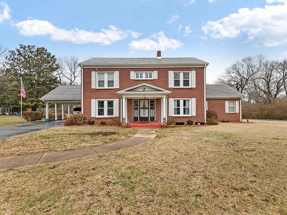 BEAUTIFUL BRICK HOME On 2.1+/- acres In The Heart of Jackson! This stately, 2-story home welcomes you with over 3680 square feet of living space with four bedrooms and 3.5 bathrooms. New Roof on main home and wired workshop, New paint and fixtures. First floor features primary bedroom with full bathroom, an entry foyer, formal dining room, formal living room with fireplace, large den with hardwood floors, fireplace with beautiful mantel, over-sized sunroom with lots of windows, kitchen with stainless steel appliances, breakfast area, powder bath room by the back door. The second level has three spacious bedrooms and two full bathrooms. Back yard is private with 2 storage buildings. Wired workshop with tons of storage, detached carport, circle drive and much, much, more!