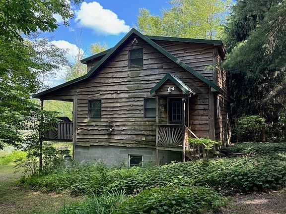 Very well maintained Hemlock sided log home in an extremely secluded location with over 100 ft frontage on Beaver Pond. Home features 3 bedrooms (1 downstairs) & 1.5 baths. The large living room area has sliding glass doors to access the covered porch overlooking the pond. There is a pellet stove for additional warmth in the dining area. The kitchen has newer appliances including an 'all in one" washer dryer. Walk upstairs to beautiful woodwork to the library & the 2 additional bedroom & half bath. Beaver Pond is ideal for kayaking / canoeing or fishing. With 4 wooded acres this cabin is ideal for those who love nature & the serenity of the outdoors.