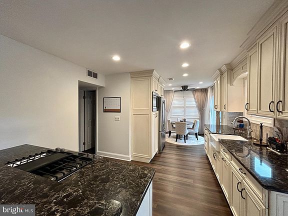 This might be the home you’ve been searching for! Nestled in the well-established Partridge Run development in the heart of Voorhees, this recently upgraded house boasts quality finishes throughout. As you walk up the stamped concrete pathway and enter through the custom mission-style front door, you’ll find yourself in a foyer with newer luxury plank flooring that extends across the first floor. The living room features a custom built-in unit for your TV and other items, with oversized windows adorned with custom plantation blinds that let in plenty of natural light. The open-concept kitchen has been updated with self-closing cabinets, crown molding, recessed lighting, granite countertops, a backsplash, and Jennair appliances. Adjacent to the kitchen is a cozy breakfast room filled with natural light, featuring sliding glass Pella doors that lead to the deck. On the other side of the kitchen, the family room offers a floor-to-ceiling stone-front fireplace, another custom built-in unit, and another set of Pella sliders to the deck. The dining room, located at the front of the home, provides a comfortable space for family dinners and holidays. The first-floor bathroom has been updated with a furniture-style vanity and granite countertop, and the freshly painted neutral walls offer a fresh palette to work with. The first floor is completed by a laundry room with an exterior door. Upstairs, you’ll find brand new white oak steps and risers leading to the second floor, where high-quality wood plank flooring has been installed. The primary bedroom features an accent wall with wallpaper imported from Italy, large windows, recessed lighting, a walk-in closet with a custom shoe rack, and an updated full bathroom with a new vanity, subway tiles, and a frameless shower door. The second floor also includes two additional bedrooms and an updated hall bathroom, with beautiful light fixtures in each bedroom. Outside, the fully fenced yard with white vinyl fencing, a large deck with newer vinyl railings, and a hot tub provides the perfect spot for your morning coffee, a nightcap, or gatherings with friends. This is truly a home to be proud of, conveniently located near shopping, restaurants, major roadways, and within the highly desired Voorhees school district!