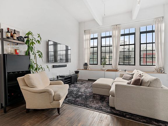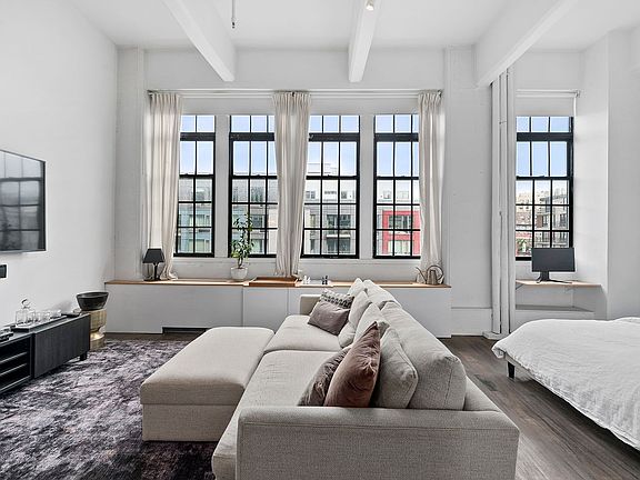 OPEN HOUSE BY APPOINTMENT ONLY Welcome to the Gretsch at 60 Broadway. This bright and open FURNISHED loft residence designed by world renowned firm McCartan offers approximately 680 sq. ft. of space, dramatic 13' ceilings, and Northern exposures with classic Williamsburg views. With extraordinary natural light, this residence features projecting, enlarged windows. The unit offers an open floor plan configuration along with hardwood floors and custom finishes. A spacious dressing room and a large coat closet complete the space. The renovated kitchen features top-of-the-line appliances including a refrigerator and freezer, a full oven and microwave, a dishwasher and an LG Washer / Dryer. The modern marble bathroom offers a deep-soaking tub and a rain shower. Built in 1916 as the Gretsch guitar factory, 60 Broadway was converted to luxury residential condominiums in 2005 with 130 unique lofts. Amenities include a full time superintendent, 24-hour doorman, a bike room, roof deck, and a newly renovated children's playroom. Located on the South Williamsburg waterfront, the Gretsch is surrounded by the best restaurants (Peter Luger) and shopping. A very short walk to Domino Park, the East River Ferry, the J, M, Z, and L subway lines, and the Williamsburg Bridge. No pets allowed. No short term leases.