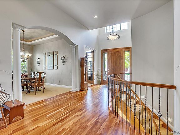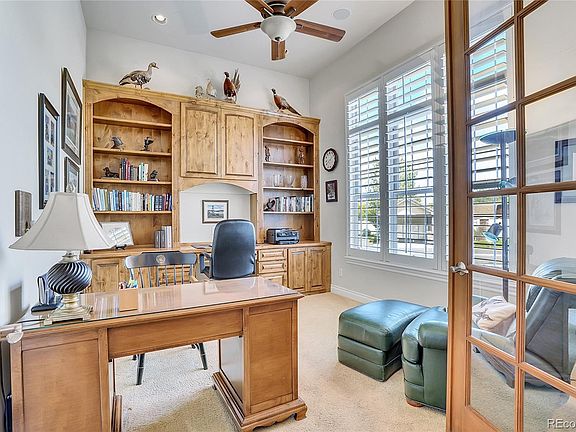Welcome to Brookhaven at Columbine Valley, ideally nestled near the exclusive Columbine Country Club! You won’t have to lift a finger in exterior maintenance in this breathtaking ranch patio home, perfect for the world traveler. Located on a corner lot with an oversized 3-car garage, this carefully curated and meticulously maintained one-owner home exudes approachable luxury. Rich hardwood floors and soaring ceilings reminiscent of an Italian chateau welcome you. A grand staircase leads to the enviable finished basement, the ideal entertainment space perfect for hosting watch parties or wine tastings. On the main level, the open living space boasts opulent custom floor-to-ceiling built-ins accented by the soft light of arched windows. Host gatherings large and small as the formal dining room, oversized island, and generous eat-in area flow seamlessly. The sensational chef's kitchen features high-end stainless-steel appliances, a six-burner gas range, double ovens, magnificent alder cabinetry, granite countertops and a slate-tile backsplash. Poised for single-level living, the main-level primary suite offers vast floorspace, with access to a generous covered patio and nearby main-floor laundry. Soak away the day in the exceptional five-piece primary bath, with a garden tub, oversized glass shower with seating, a vast walk-in closet, and a sprawling dual-sink vanity. Enjoy a book in the main level office, filled with natural light from oversized windows. Downstairs you’ll find three bedrooms, a climate-controlled wine closet and a three-quarter bath, sure to make guests feel right at home. The expansive basement family room features a cut stone gas fireplace, a gaming area, and an extraordinary bar with sink and dishwasher. Drive your golf cart directly to Columbine Country Club from home! Close to the South Platte River trails and Downtown Littleton’s up & coming restaurant and entertainment scene, with convenient light rail access. New HVAC 07/2024!