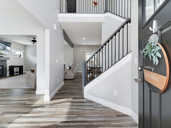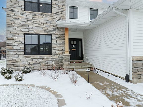 Stunning 4 bedroom, 3.5 bath with finished basement on large corner lot. This beautiful home has a split three car garage, and outstanding curb appeal with the stone columns and modern farmhouse look that sets this home apart from the rest. Step in to a foyer accented by a striking staircase going up to an area overlooking the generous foyer, a shelf exposed to the foyer for showcasing interesting pieces, plants, or a special snowman to welcome winter. To your left is a formal dining room, or a main floor office depending on your needs. Enter next into a well appointed family room with gas fireplace and a lovely expansive kitchen with beautiful white cabinetry. Upstairs is a large primary bedroom with en suite that includes heated floors. Two more bedrooms grace the second floor with large walk in closets. Head down to the basement and find a lovely family room with a second cozy fireplace, a fourth bedroom and full bath for guests, and a den/office for your private work space. This home has an oversized 3-car heated Split Garage from which you enter into a spacious laundry room with drop zone, and a half bath adjacent. Large yard with nice sized patio for enjoying the outdoors. This home was built with 2x6 exterior construction, LED puck lights for superior energy efficiency and light quality, USB port plugs situated throughout, Wifi programable thermostat, high efficiency HVAC, and a MyQ garage door remote access from smart phones. All the newer up to date amenities were included when this home was built! Be sure you do not miss this unique home!