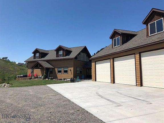 Experience the incredible views and privacy on this wonderful Bozeman pass area property. Its convenient location makes it equal distance from Bozeman and Livingston. The beautiful home and detached 5 car garage & apartment are situated on 5 useable acres. The main house features a master with ensuite bathroom, updated kitchen, dining room and half bath. Upstairs, the living room is flooded with light from the large windows and two additional bedrooms share a full bath. The detached 5 car garage has space for all of your toys, cars, campers, boats and a shop. Above the garage is a beautifully finished apartment with two bedrooms and one bathroom, full kitchen and large living space. It's the perfect place for family and friends to come stay, or to use as an income generating rental property. The property is positioned facing east/southeast provides great year-round light and incredible views of the Absaroka Mountains.