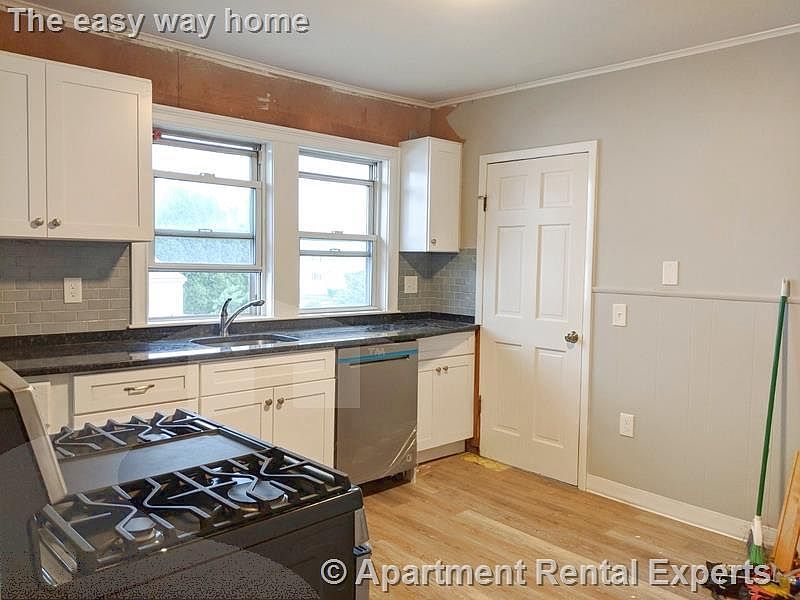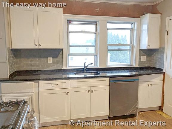 Located in the Tufts area of Medford. 3+ bedroom apartment currently under renovations. Hardwood floors, eat-in kitchen with dishwasher, disposal, granite counter tops and stainless steel appliances. 2 porches and a shared yard. 1 garage parking spot and 1 spot in the driveway is included. (Reference #174439)