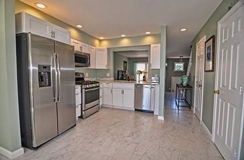 Complete info: http://60camelotdrive8.NiceFamilyHome.com - Welcome home to 60 Camelot Drive. This is the one you have been waiting for, this unit is possibly the nicest in the complex. The entire first floor has been completely remodeled with a NEW kitchen with gorgeous marble counters, stainless appliances & new tile flooring. The floor plan is modern, open & filled with sunlight. There is a dining area in the open kitchen with a slider which leads to the private deck overlooking lush greenery. There is the convenience of a half bath off of the kitchen featuring newer tile flooring and vanity. The second floor has a master suite with a jack and jill bathroom, as well as a second generous size bedroom. There is also a finished room in the lower level ideal for a third bedroom or office with access leading to the outside. One car garage parking completes the package. This home is truly turn key ready. Don''t delay..