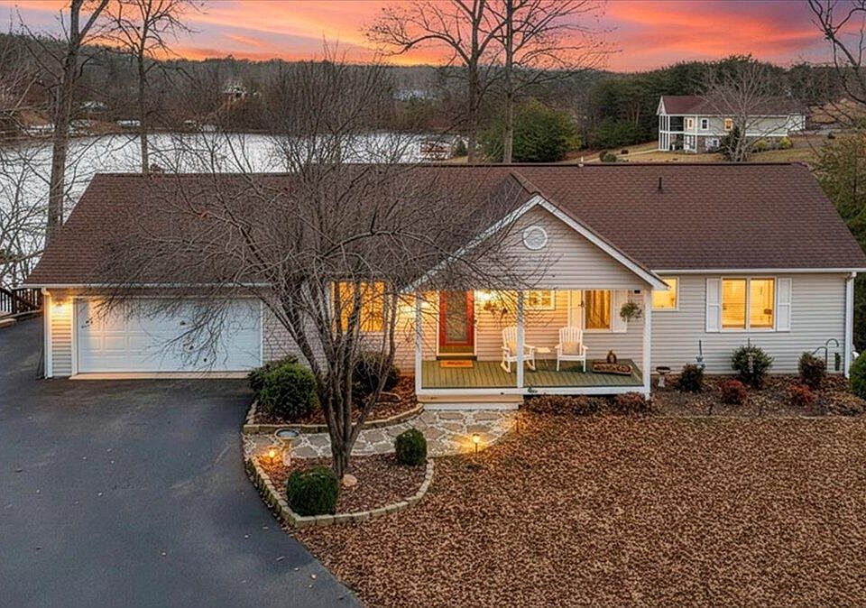 Discover peaceful lakefront living in this inviting waterfront home in desirable Forest Shores. Thoughtfully designed to maximize the Smith Mountain Lake lifestyle, this property offers stunning water views, a large private dock, and multiple outdoor spaces and fire pit area, perfect for relaxing or entertaining. Inside, the open-concept layout is filled with natural light featuring sliding glass doors in every room to showcase the incredible views. A gorgeous large stone gas fireplace anchors the lower living area, creating a warm and cozy gathering space for quiet evenings or hosting family and friends. All three bedrooms include walk-in closets, and the finished basement adds great flex space for guests, recreation, or a home office. Recent updates include appliances 2024, sump pump, Hydrofracking and well pump, and new LVP flooring in the downstairs bedroom. Outdoor living is exceptional: enjoy the upper deck with under-decking that keeps the lower patio dry, allowing you to sit outside year-round, or enjoy the hot tub, even during a rainstorm. The fenced backyard provides a safe place for pets, while the dock has been refreshed with new boards and decking within the last year. Located in a quiet, private neighborhood, this home offers comfort, convenience, and the lakefront lifestyle you've been dreaming of.