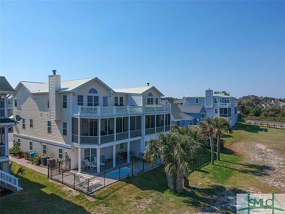 This luxuriously furnished 5 BR, 5 Bath, 3565 sq. ft. home on Tybee's more private North Beach, offers spectacular views of the Atlantic Ocean, Sav. River, constantly passing huge merchant ships, and unforgettable sunsets. The rear includes a brick paver patio with a small swimming pool that is completely fenced in for privacy. Beyond the pool in the rear is the 2 acre neighborhood turtle pond tucked just in front of the sand dunes. The home also features a gourmet kitchen with a well designed island, and beautiful cherry flooring in the kitchen, LR & DR, and master BR. An elevator in the double garage services all 3 floors. B/C of its high elevation, the house is in a "X" zone which does not require flood insurance. Call the agent for showing info.