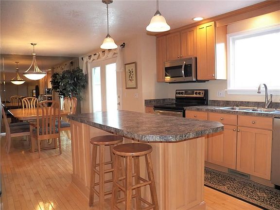 BEAUTIFUL NEUTRAL COLOR SPLIT-LEVEL - SPACIOUS 1712 SF - 3 BEDRM W/HDWD UNDER CARPET - 4TH BEDRM ON 1ST FLOOR WAS CONVERTED TO LAUNDRY RM - OPEN LAYOUT MAPLE KITCHEN W/BREAKFAST ISLAND & MAPLE HDWD FLR - STAINLESS APPLIANCES - FRENCH DOORS TO DECK - SUNKEN GREAT ROOM - BRICK FIREPLACE - SLIDER TO PATIO - CENT AIR - PART FIN BSMT - MOVE-IN READY. TEAR OFF ROOF 10YRS.