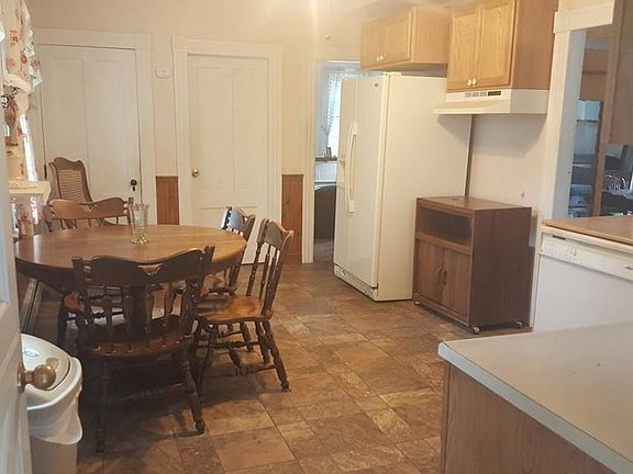 MOVE IN READY, all the work has been done, newer roof, vinyl siding, new tilt in windows, plaster walls have been skim coated, newer furnace, hot water heater, composite decking with new railings and posts. Walk in from the welcoming porch into a nice entryway with laundry hookups. Newer large first floor bedroom with hardwood floors, walk-In closet and a picture window. Welcoming kitchen and dining room that open to a bright living room all with high ceilings. Upstairs has three more good sized bedrooms with ample closet space. Two large attic spaces for plenty of storage. The basement has a large workshop area which walks out to the secluded fenced in, private back yard, The garage also has a workshop area with attic storage and two area below for storage or workshop space. This home is wired for a generator hook-up. This is a large well cared for family home, you should not miss!