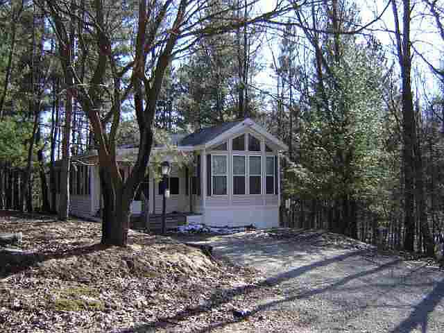 Relax in total comfort. Close to Steuben County lakes but quiet with the feeling of Northern Michigan. This beautiful park model offers everything you could want in a summer getaway. Most furniture included (ask for list of exclusions) as well as all appliances. This is a MUST SEE! Large enclosed porch doubles your living space and loft area makes for extra sleeping area for the younger crowd. Community beach at small lake, good swimming & fishing as well as clubhouse for extra large gatherings.