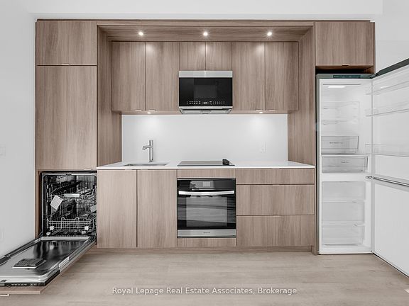 Beautiful and functional one-bedroom + den suite at The Westerly 2, showcasing light, modern finishes and a bright, open layout. The contemporary kitchen features full-size stainless-steel appliances, quartz countertops, and sleek wood-grain cabinetry with integrated lighting. The open-concept living and dining area offers a seamless flow for both relaxing and entertaining, extending to a private balcony with tranquil courtyard views. The spacious bedroom features floor-to-ceiling windows and a large closet, providing an abundance of natural light and storage. A separate den off the entryway offers the perfect space for a home office or reading nook, while the elegant four-piece bathroom and in-suite laundry complete this thoughtfully designed home. One parking space is included for added convenience. Residents of The Westerly 2 enjoy access to premium amenities, including a state-of-the-art fitness centre, yoga studio, co-working lounge, party and entertainment room, outdoor terrace with BBQ and dining areas, 24-hour concierge, and visitor parking. Ideally located steps from Islington Subway Station, Bloor Street shops and cafes, and just minutes to Sherway Gardens, local parks, and major highways, The Westerly 2 offers the best of contemporary urban living with exceptional connectivity and convenience.