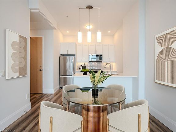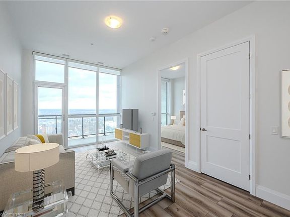 Showstopper - Scott McGillivray Collection - 29th Floor Condo with Stunning City Views! The first one to be available for resale. Exclusive to top three floors only: Soaring 10' high ceilings, floor to ceiling windows, gas stove, oversized entry and interior doors + much more! Experience unparalleled luxury in this 549 sq. ft. condo, part of the coveted Scott McGillivray Collection, exclusively available on the top three floors of the building. Elevated Elegance: Enjoy the prestige of living on one of the building’s highest floors, where design meets sophistication. Soaring Ceilings: 10’ ceilings paired with taller doors create an expansive and luxurious ambiance. Premium Finishes: Upgraded vinyl plank flooring, upgraded trim, designer hardware throughout. Chef’s Dream: Upgraded energy-efficient appliance package featuring a professional-grade gas stove. Quartz countertops, 40” upgraded cabinetry with slow-close drawers, undercabinet lighting, and a sleek ceramic tile backsplash. Double-bowl stainless steel undermount sink with convenient pullout faucet. Luxury Defined: Frameless glass-enclosed shower with a rain shower head and handheld sprayer. Quartz countertops, upgraded cabinetry with 40" uppers, modern chrome fixtures and tilework. Grand Entryway: Oversized 3'x7' solid core wood door, paired with upgraded trim and décor for a welcoming feel. Private Balcony: Your personal outdoor space with panoramic city views. Advanced Comfort: Programmable thermostat, wireless internet, upgraded light fixtures. Unparalleled Downtown Location: Directly across the street from Victoria Park LRT Station. Walk to Victoria Street GO Station, Victoria Park, Google, Starbucks, bars an restaurants. Amenities Galore: Rooftop patio with lounge area, BBQs, party room with kitchen, exercise and yoga rooms, rooftop dog park with dog wash area, playground, guest suite. Don’t miss this opportunity to own virtually the best one-bedroom condo in downtown Kitchener.